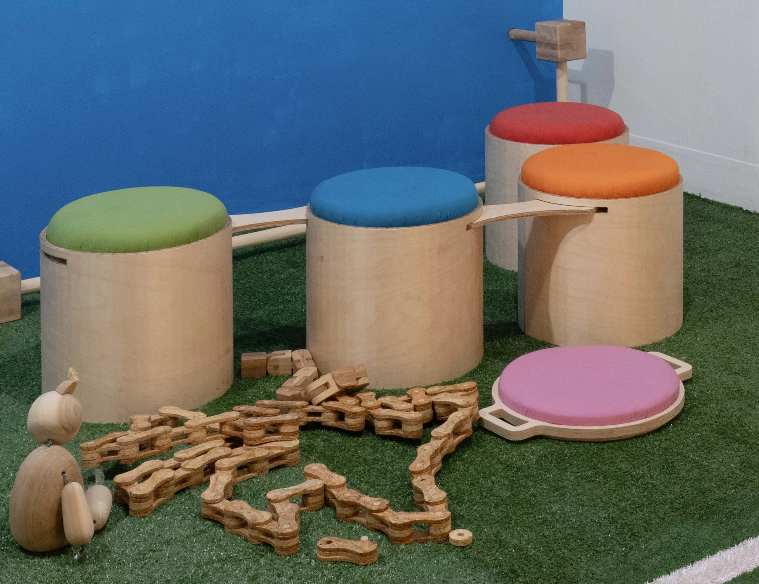 I often reminisce on childhood and the ease of making friends, and how simple it was to be kind to one another. I can't help but feel that continues to get lost on people as they age. The idea of professionalism, peer competition, and “Adulthood” is spoon fed to us from the moment we hit 18. As a furniture maker and artist I work to combat that, to make art that pulls people together. I want to bring out the kid in everyone by encouraging interaction with my work and with each other. There is something about "play" that lightens a person and brings people together in the simplest way. So, why did we stop playing? I want people to see the world through my lens. The one that makes puddles for jumping in, flowers for picking, and friends for hugging. I make multi person furniture that is structured to foster connection just by sitting down in it. An object that can draw people to smile at each other or share a few words is an object that has succeeded. That is what I strive for. I also find myself gravitating towards making interactive art. Toys are often my vessel for bringing out joy in my viewers. Pieces large enough for the masses to enjoy together create a unique experience that allows groups of people to not only experience a moment of wonder individually but also as a community. It comes down to that same principle of "play," being with each other and enjoying ourselves without second thought or judgment. Life through youthfulness is a kinder one, which is why I try unite people by encouraging viewers to get a little unserious with one another.